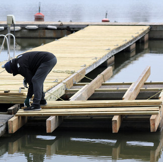 Laiturin uusimiseen upposi monta sata metriä puutavaraa, neljä uutta ponttoonia, tuhansia ruuveja ja paljon oheistavaraa.